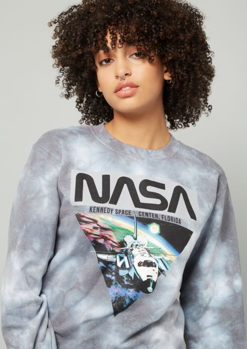 Gray Tie Dye Nasa Crew Neck Graphic Sweatshirt Sweatshirts Rue21